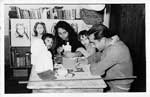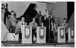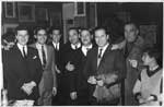 Dirigentes de la colectividad gallega celebran el Día de Galicia en el programa radiofónico “Recordando a Galicia”, de Maruja Boga, en julio de 1950.