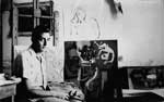 En su taller, con alumnos particulares y su ayudante, Teresa Gómez.